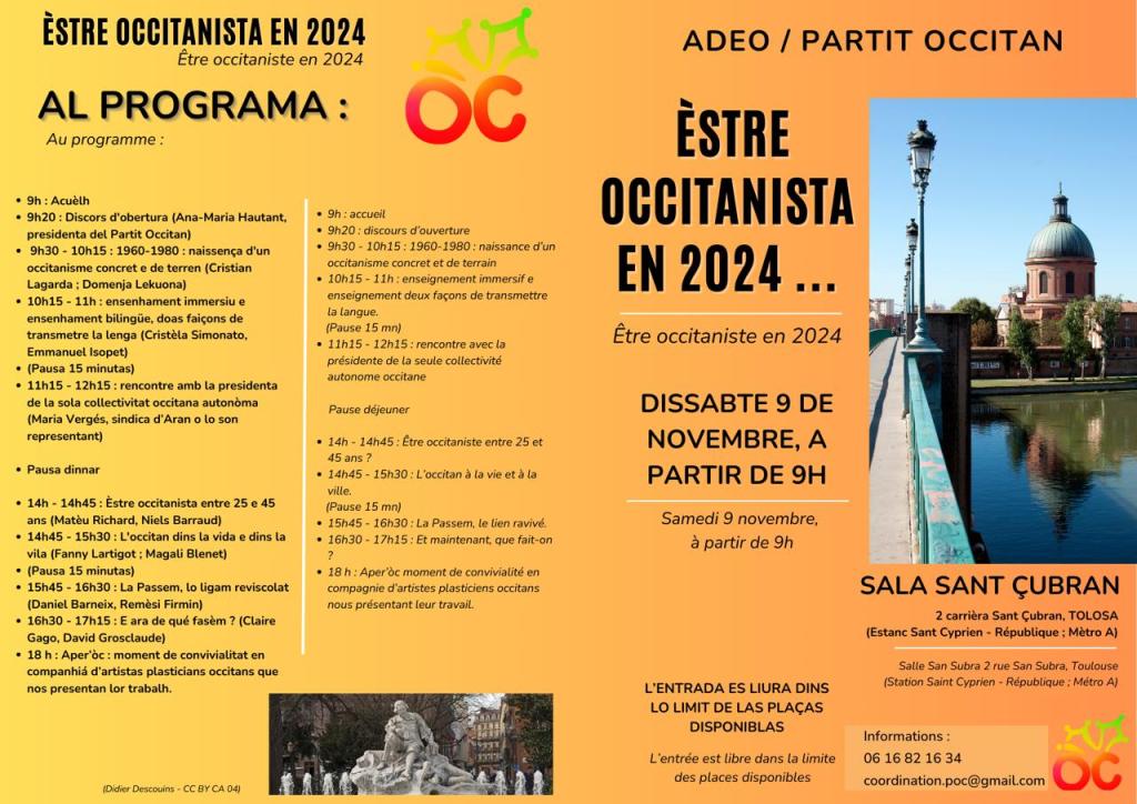 Èstre occitanista en 2024. 9 de novembre Tolosa de 9h a 18H, 2 carrièra Sant Çubran