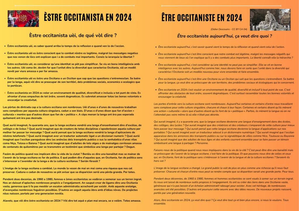 Lo 9 de novembre vos prepausam de far un bilanç del camin fait pel movement occitan, jos totas sas formas. Nòstre objectiu es de donar la paraula als que fan d’accions ara en 2024.