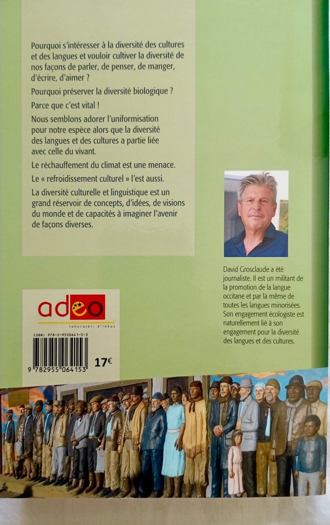 A partir d’experiéncias personaus, deu men tribalh de jornalista, deus mens viatges, de rencontres e tanben de tèxtes d’autors coneguts o pas, qu’essagi de har compréner que se l’escaloriment deu climat ei un perilh deus grans, l’uniformisacion de las lengas e de las culturas, qui apèri « l’en.hrediment culturau », ei ua miaça autan grana com la disparicion de la diversitat biologica.