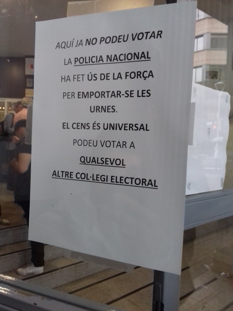 Sabèm que la repression aquel jorn del primièr d’octobre foguèt violenta mas que lo vòte se debanèt. Dos milions de personas votèron en favor de l’independéncia de Catalonha.